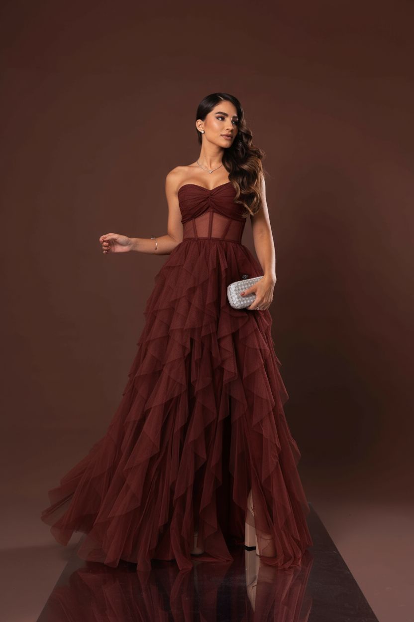 Qualidade do tecido: Nossos vestidos são feitos com tecidos de alta qualidade que não só parece luxuoso, mas também te proporciona conforto. Perfeito para quem busca uma presença marcante e ao mesmo tempo delicada em momentos únicos.