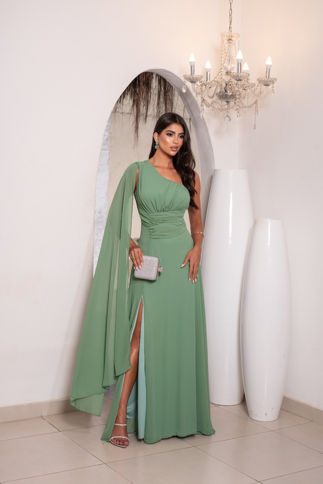 O vestido Francine é a perfeita combinação entre elegância e impacto. Seu design de um ombro só e a manga véu conferem um toque sofisticado e imponente, ideal para quem deseja marcar presença com estilo.