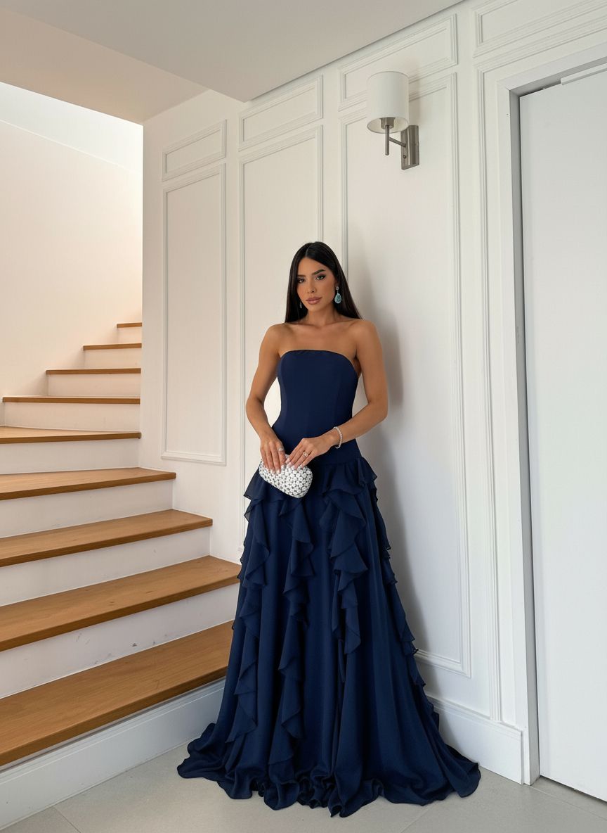 O vestido Mia é sinônimo de delicadeza e sofisticação. Seu modelo tomara que caia estruturado valoriza o colo e traz um ar moderno e feminino. A saia despontada com babados em camadas cria um movimento encantador, perfeito para quem busca leveza e elegância em cada detalhe.